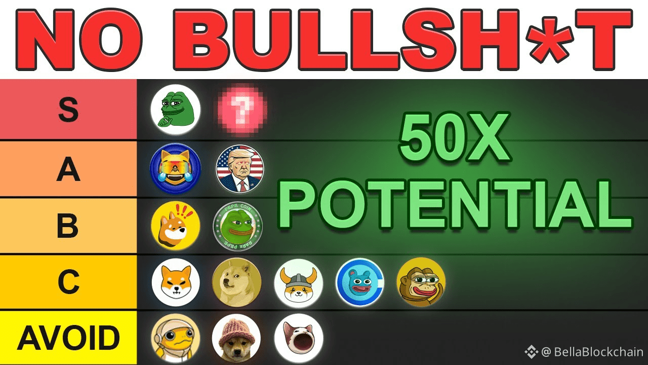 The strong meme assets are positioning themselves for a new cycle, while weaker ones are fading out. Smart traders will always look at strength, ranking, market depth, and narrative together — not just price waves. This meme tier chart highlights exactly where the real 50x potential still lives and which coins deserve caution.