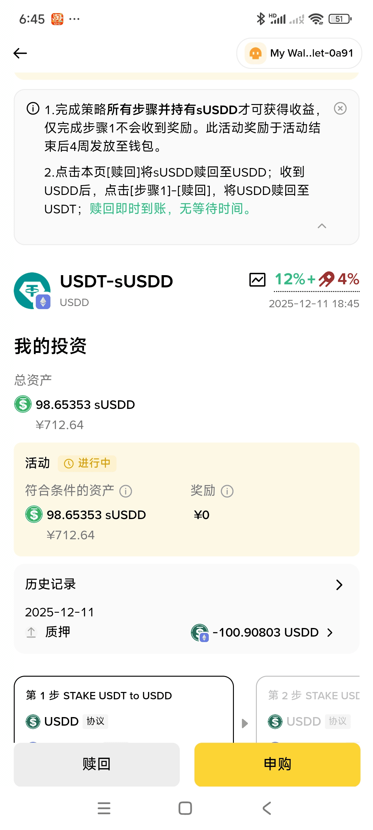 Today at the square, I saw a financial management activity for USDD in the wallet, and I thought I had a little money in my wallet, so I might as well deposit some into the financial management.