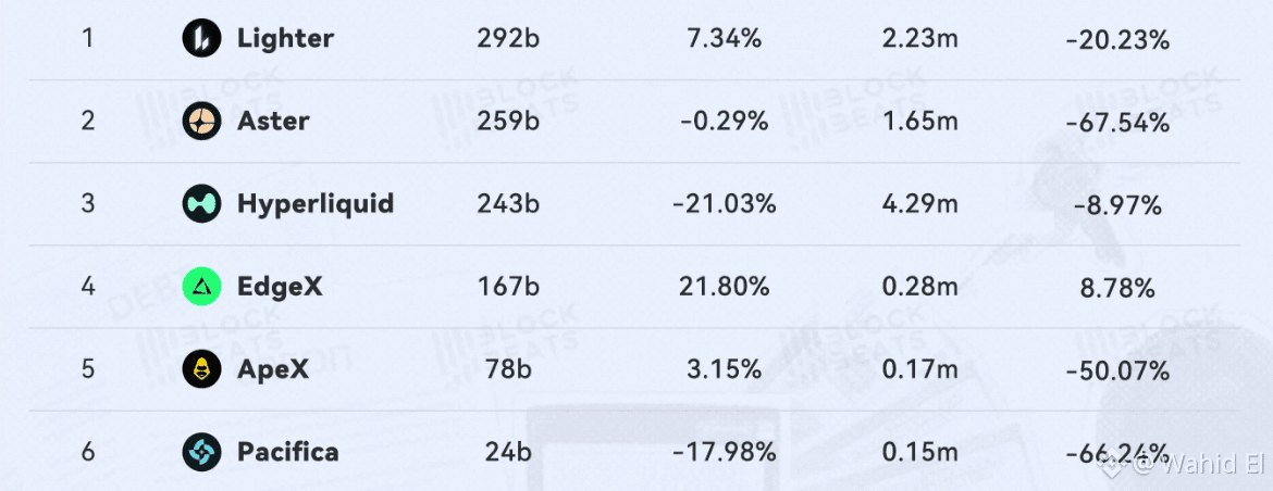في نوفمبر، انخفض حجم تداول العقود الدائمة ل Perp DEXs السائدة بنسبة 1.70٪ مقارنة بأكتوبر، وانخفضت حركة المرور على الموقع الإلكتروني بنسبة 35.5٪.