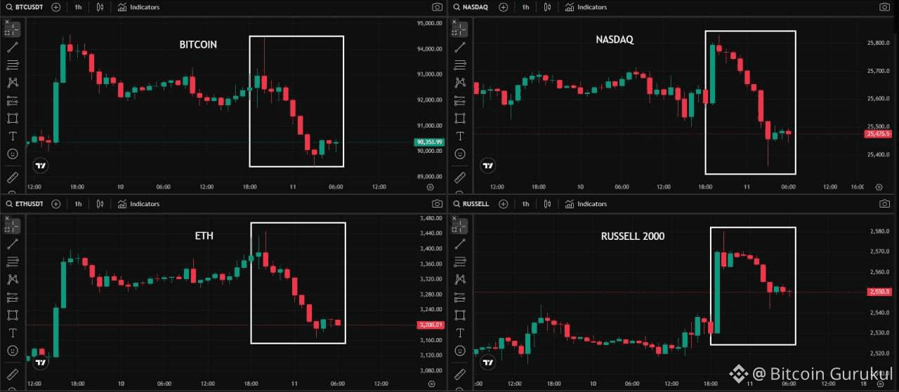 The rate cut was already priced into asset values. Smart money had already front-run the trade and was ready to exit. Powell didn't provide strong signals that more aggressive easing was coming. Oracle's disappointing results triggered concerns about the sustainability of tech valuations. Profit-taking accelerated once uncertainty entered the picture.