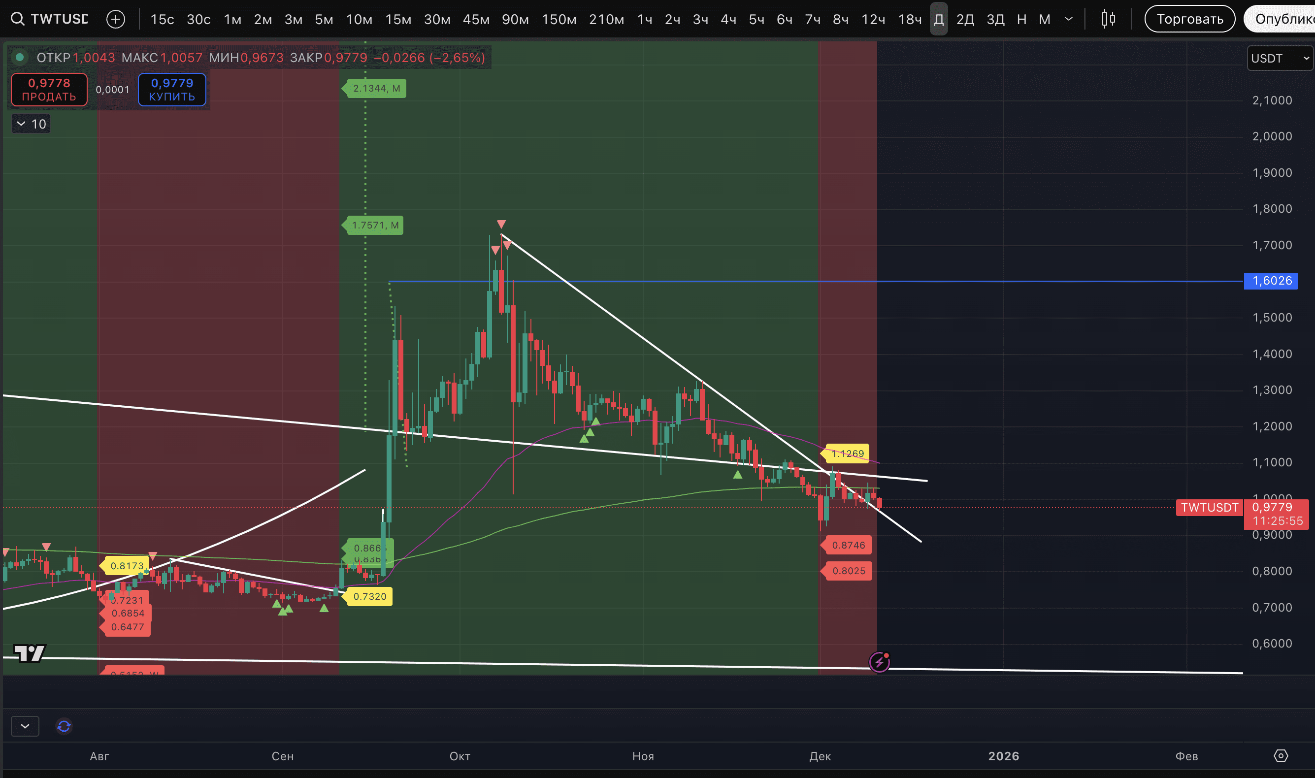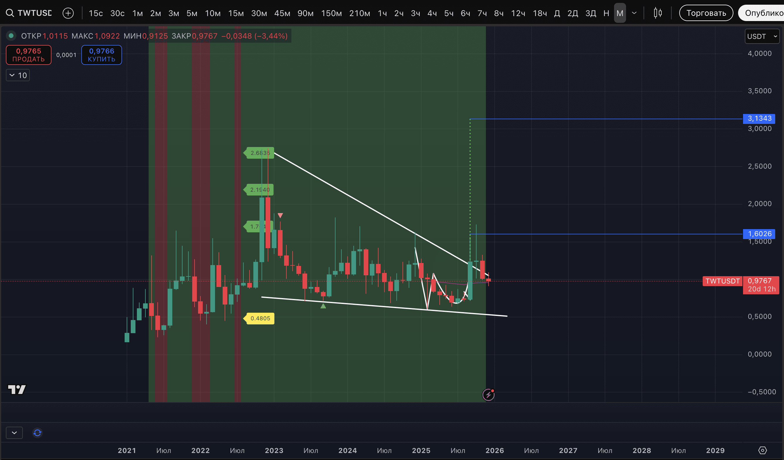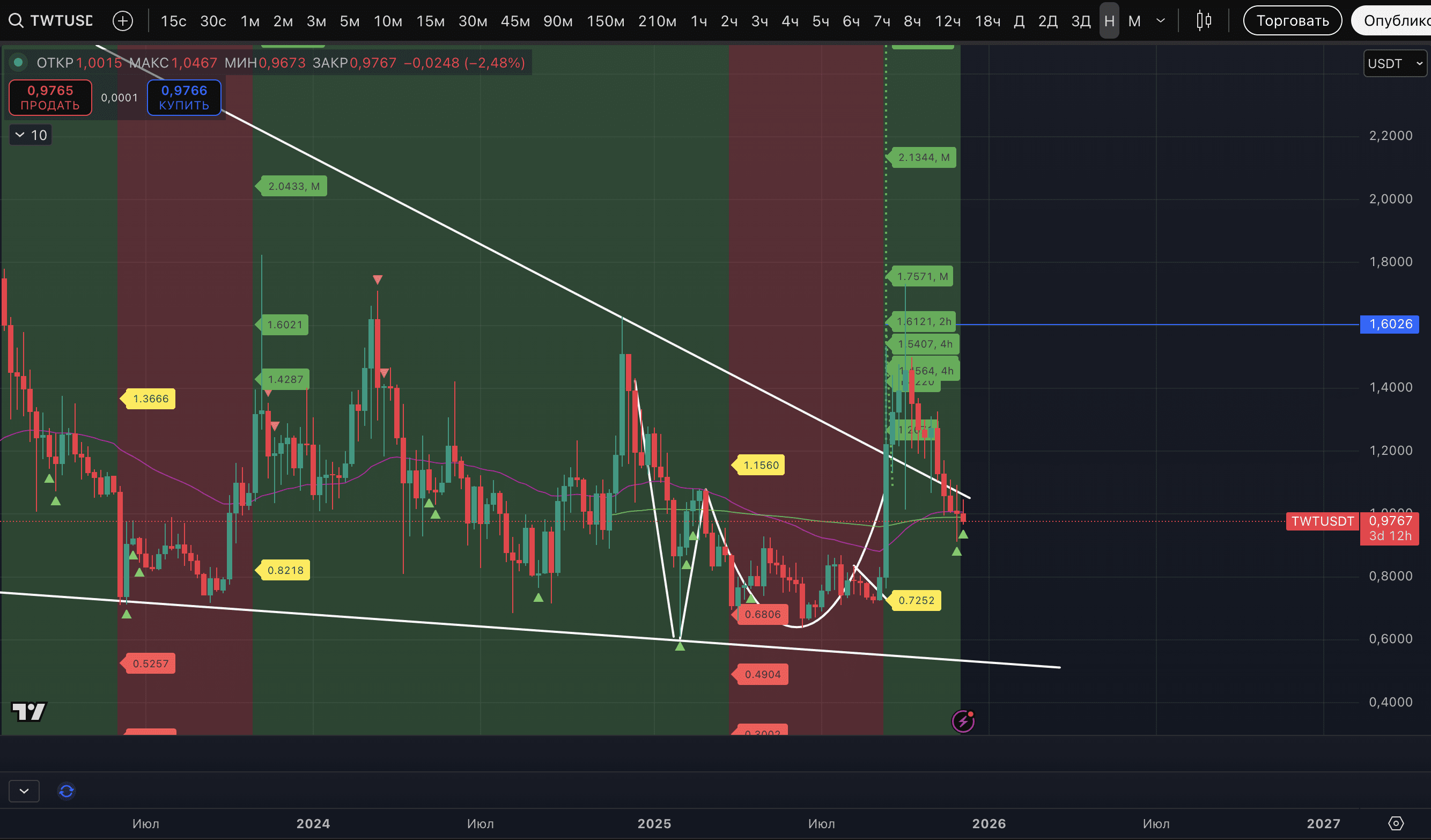 By the way, the Trust Wallet token, #TWT, is again discounted today - the price is below $1. And after the rise in September-October, the price has returned to test the EMA 50 of the monthly timeframe. At the same time, on the weekly timeframe, the asset already has its second potential low mark. And despite the correction for two months, it still maintains a stable uptrend according to our indicator on the weekly timeframe. There are potential low marks for the asset on the 3-day timeframe as well. However, there the price has fallen into a steady downtrend according to our indicator, and the targets of $0.8442 and $0.7003 have not yet been worked out. If the price is not brought down there this week and next week - there are good chances that such discounts during the current decline will not be seen again. And I would really not want that.