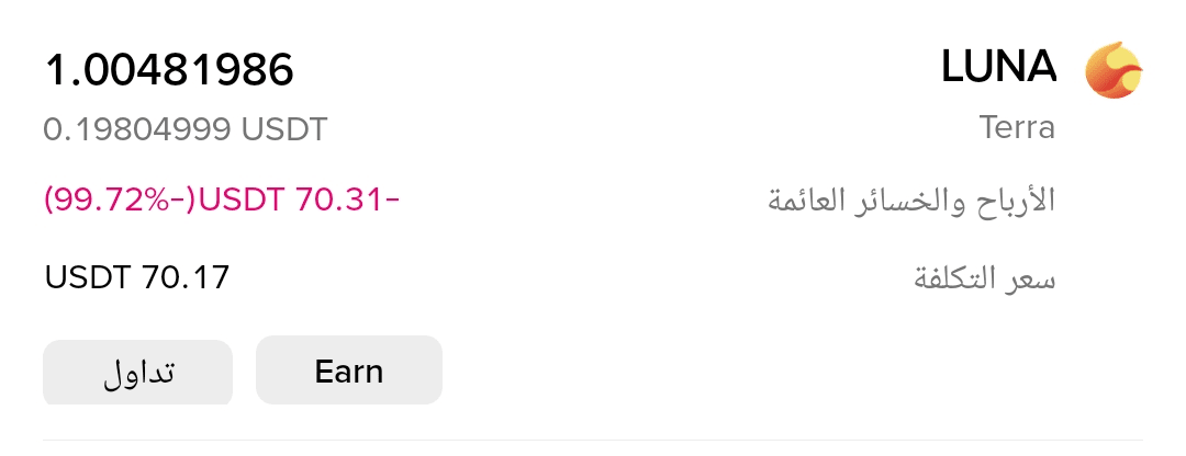 In this crazy market, will you do it $LUNA and recover your capital when I bought it for 70 dollars and kept one for myself for the long term since 4 years ago?! 🤔 And a loss exceeding 99.9%