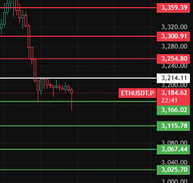 Ethereum night focus on the top of the consolidation area 3215, only if it stands firmly above this position will the market continue to rise, pay attention to the resistance levels around 3254-3300-3360!