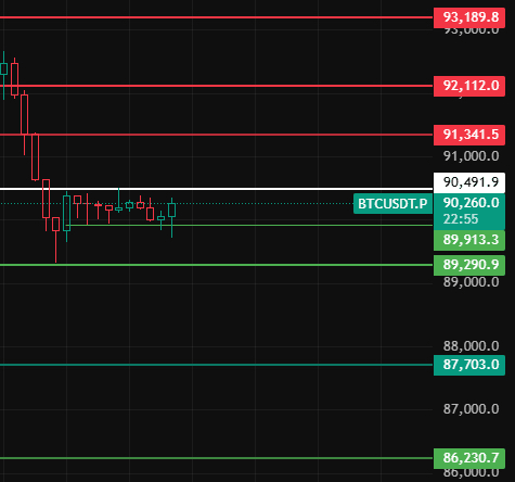 Pay attention to the horizontal range top of 905 for Bitcoin at night. Only if it stabilizes above this position will the market continue to rise. Keep an eye on the resistance levels above, around 91340-92110-93190!