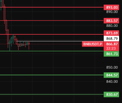 BNB night focus on the top of the consolidation area 868, only if it stands firmly above this position will the market continue to rise, pay attention to the resistance levels around 873-883-893!