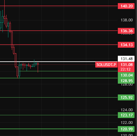 SOL night focus on the top of the consolidation area 131, only if it stands firmly above this position will the market continue to rise, pay attention to the resistance levels around 134-136-140!