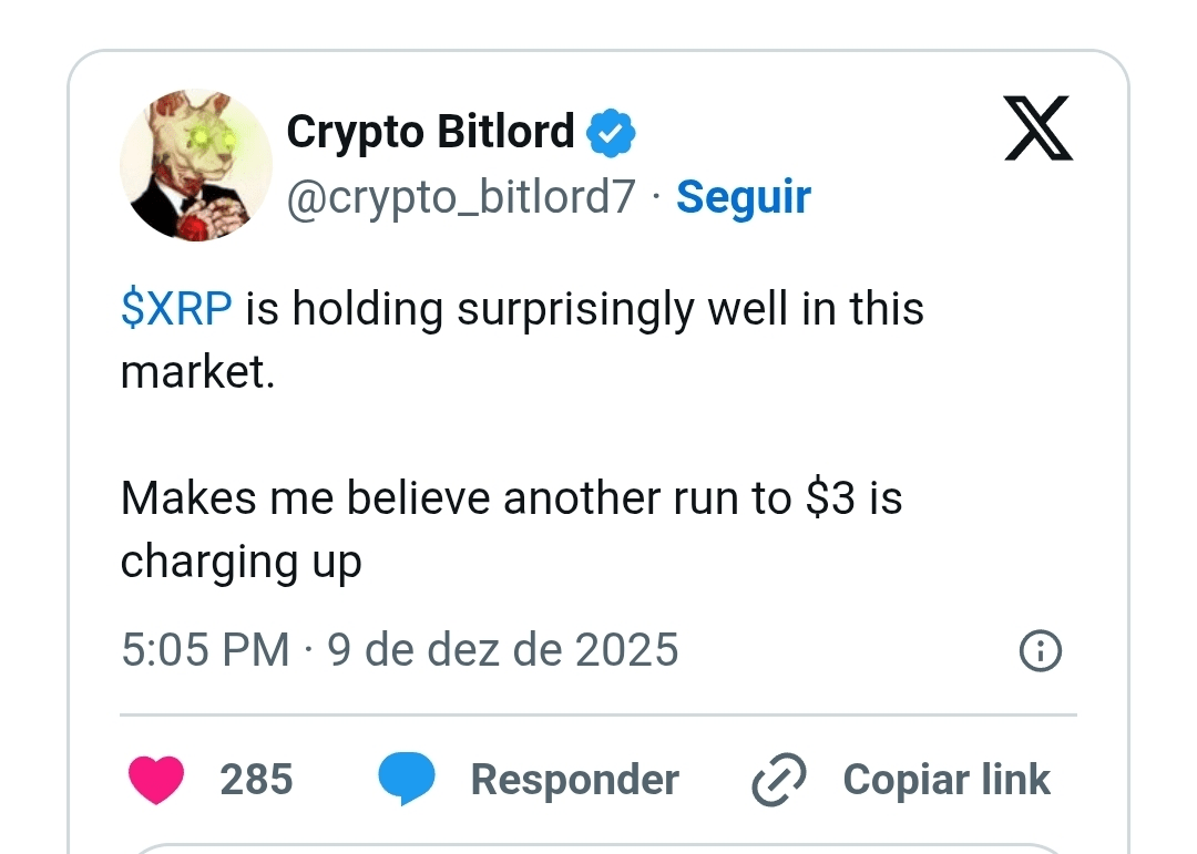 Finance expert Crypto Bitlord (@crypto_bitlord7) shared an important message with the community. In a post on X, he noted that XRP is holding up well despite the recent turmoil in the market overall. He added: "This makes me believe that another rise to $3 is on the way."