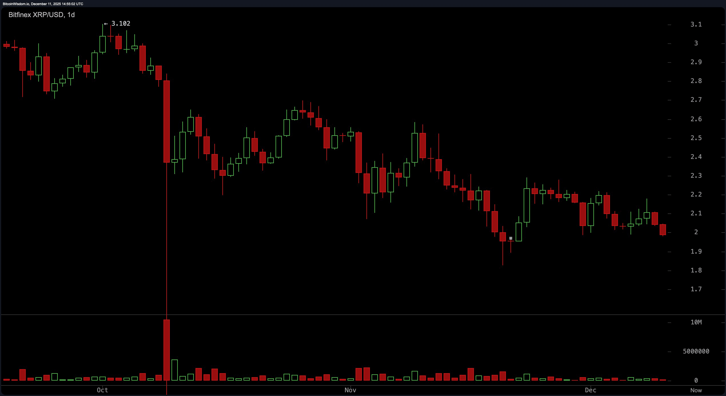 A drop to $1.80 — or worse, prolonged consolidation below $2.00 — will keep XRP firmly in bearish territory, with December's close resembling more of a whisper than a roar.