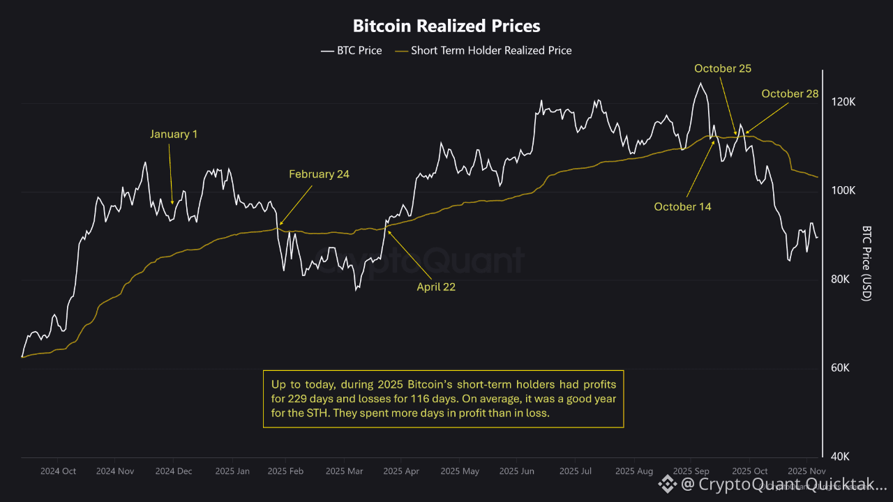 Up to today, during 2025 Bitcoin’s short-term holders had profits for 229 days and losses for 116 days. On average, it was a good year for the STH. They spent more days in profit than in loss.