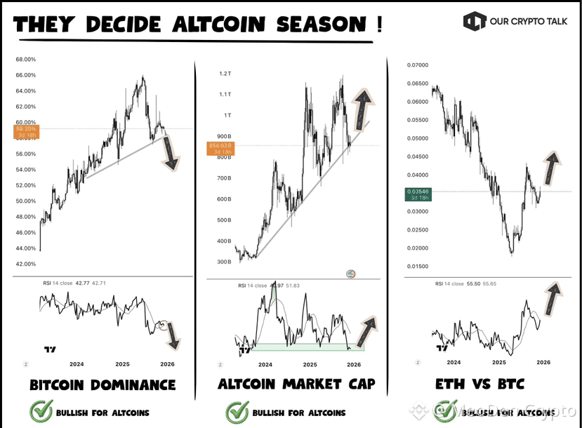 • RSI on dominance is dropping, showing weakness in BTC’s control