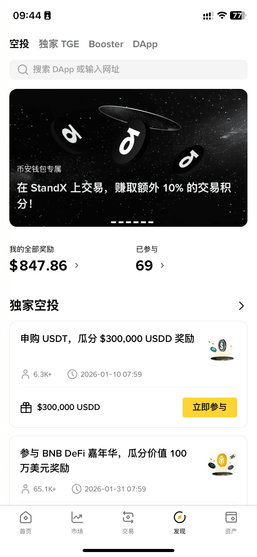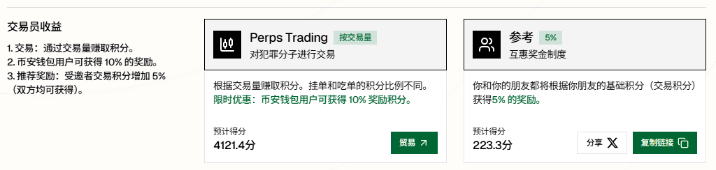 So StandX and Binance Wallet are collaborating on this activity, which is a perfect match: the participants from the first two phases have all finished, StandX needs to attract new users, and Binance Wallet has a large traffic entry; Binance Wallet also needs to expand its ecosystem and encourage users to develop the habit of using the Binance Wallet, and this kind of activity can engage users.