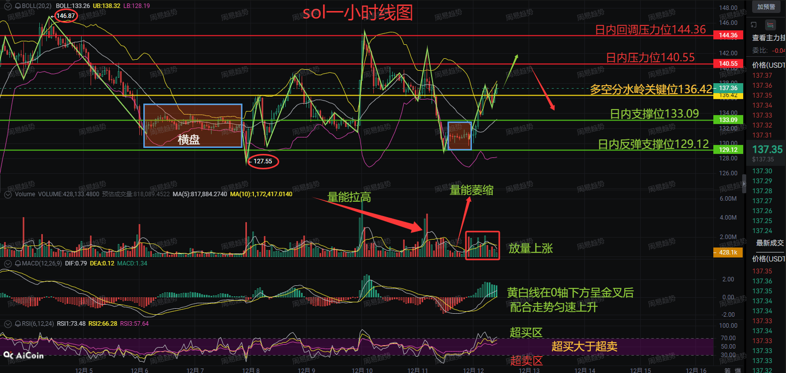 Support below: 136.42 is the dividing line for long and short; if it breaks, watch for 133.09. If it really drops, 129.12 is the true position to buy.