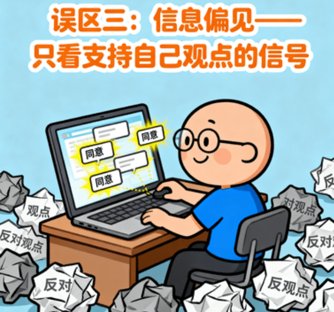 Solution: Actively seek opposing viewpoints and engage in thought collision. You can list three main reasons supporting your bullish view and force yourself to list three main reasons for a bearish view. By comparing the logic of both sides, you can more comprehensively assess market risks. If the reasons supporting the bullish view are not sufficient, then temporarily abandon the bottom fishing; if the bearish reasons do not hold up, then you can try to build a small position.