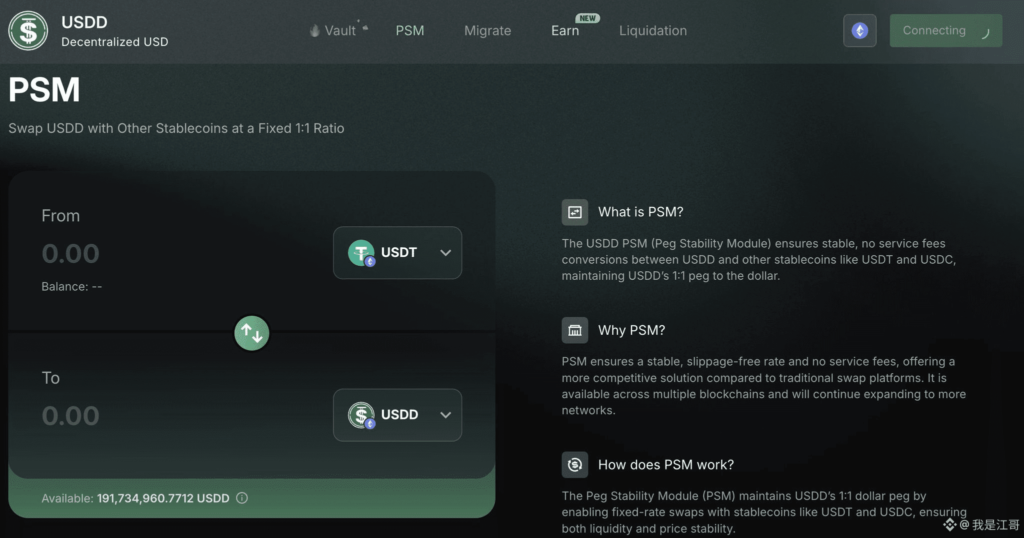 PSM(特别是 TRON 版本)流动性近五千万,ETH / BSC 上的流动性也非常充沛,实现 1:1 无滑点兑换,给了稳定币最稀缺的“抗震能力”。