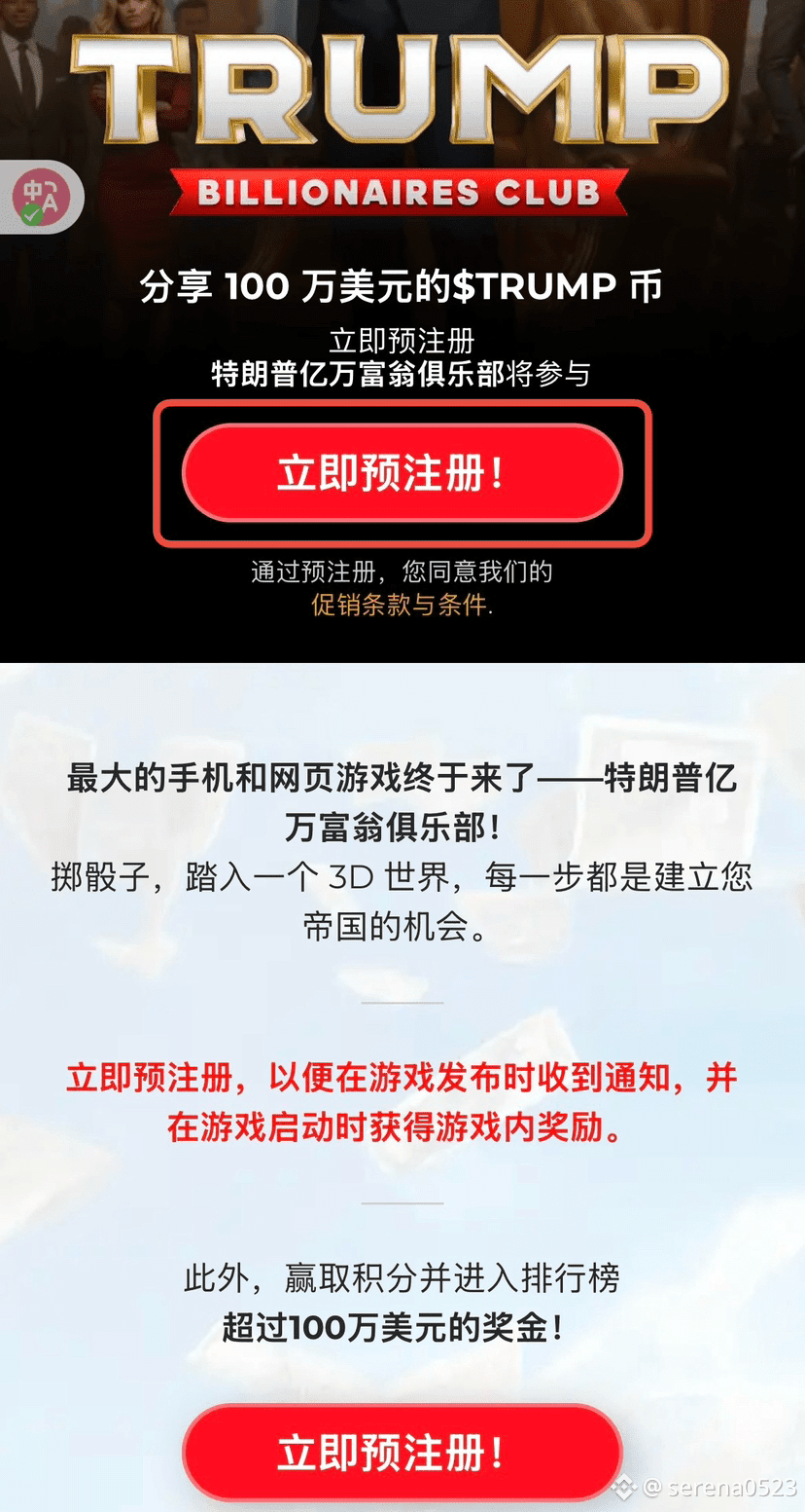 有个超香的搞钱机会——#TRUMP 亿万富翁俱乐部开放预注册了!