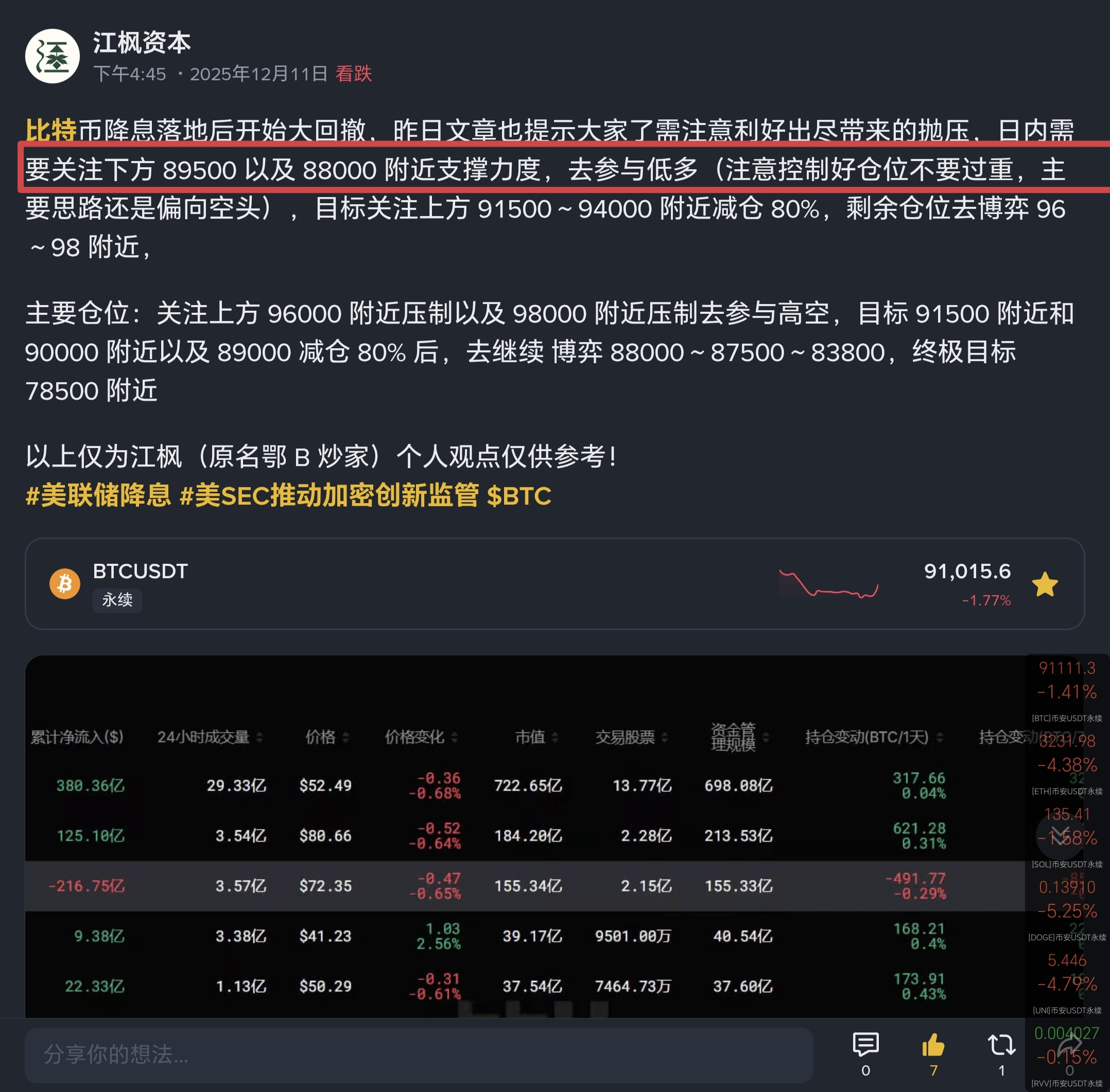 · Target price levels: First target $90,500 (dividing line), second target $88,800 - $89,000 (core support area). It is recommended to reduce 80% of positions before aiming for $87,500 and the ultimate target near $78,500!