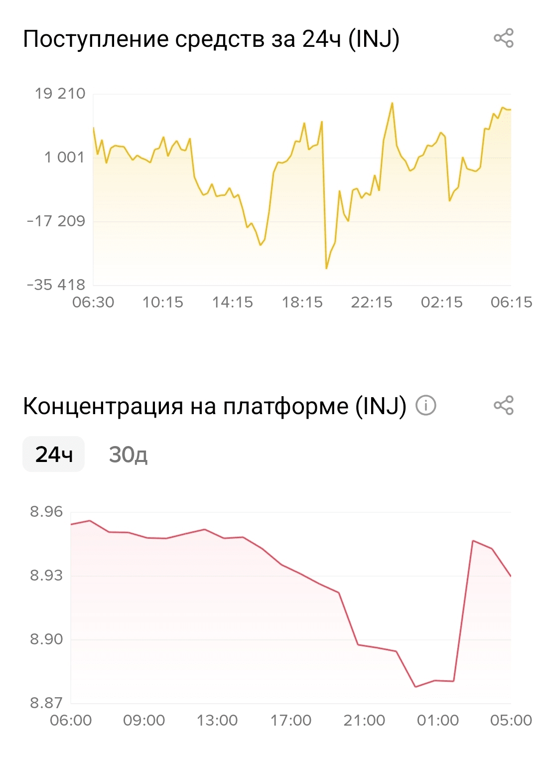 What I like about the current technical picture is that after a sharp drop, the price did not continue to crash but stopped and began to form a sideways movement with a slight upward tilt. This means that sellers have exhausted themselves at the level of 5.30, while buyers are gradually accumulating positions. Trading volumes remain moderate – around 1.45 million for INJ and nearly 8 million for USDT per day. This is not the crazy hype we saw at the peak, but also not complete apathy. The market is alive, just in a phase of contemplation.