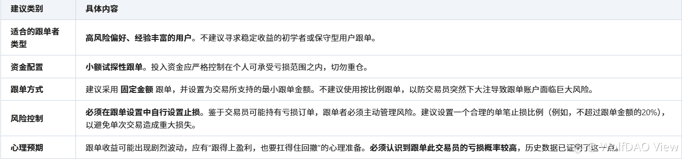 跟单者集体亏损是最直接的警示 —— 带单员的微利策略,根本扛不住跟单时的滑点和手续费,他赚 0.008USDT,你可能因滑点直接亏损。