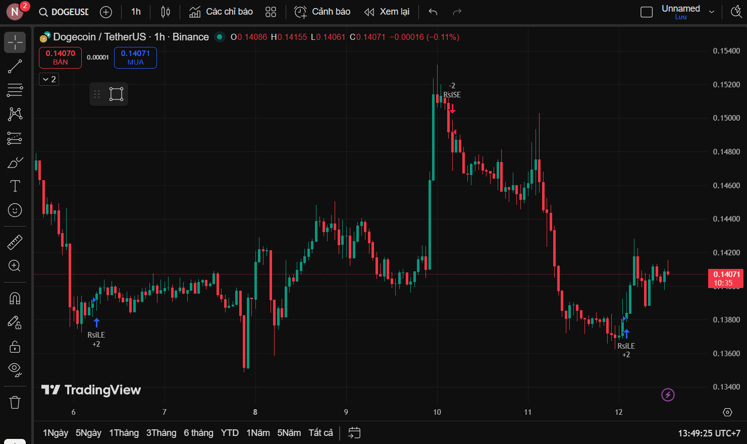 This feeling often causes Long traders to become complacent. RSI after RsiLE is moving sideways and not expanding, indicating that buying pressure is only sufficient to temporarily hold the price. Structurally, DOGE is still forming lower highs, with no signs of breaking the bearish structure. Recent green candles are small and uneven, while even slight selling pressure causes the price to slide down again.