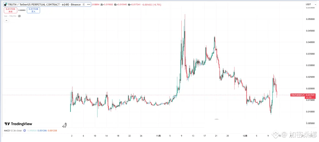TRUTH 就是典型的 “壳子币”:刚上线先阴跌,然后突然拉升出货,接着一路向下!现在看这走势,难道又要故技重施?