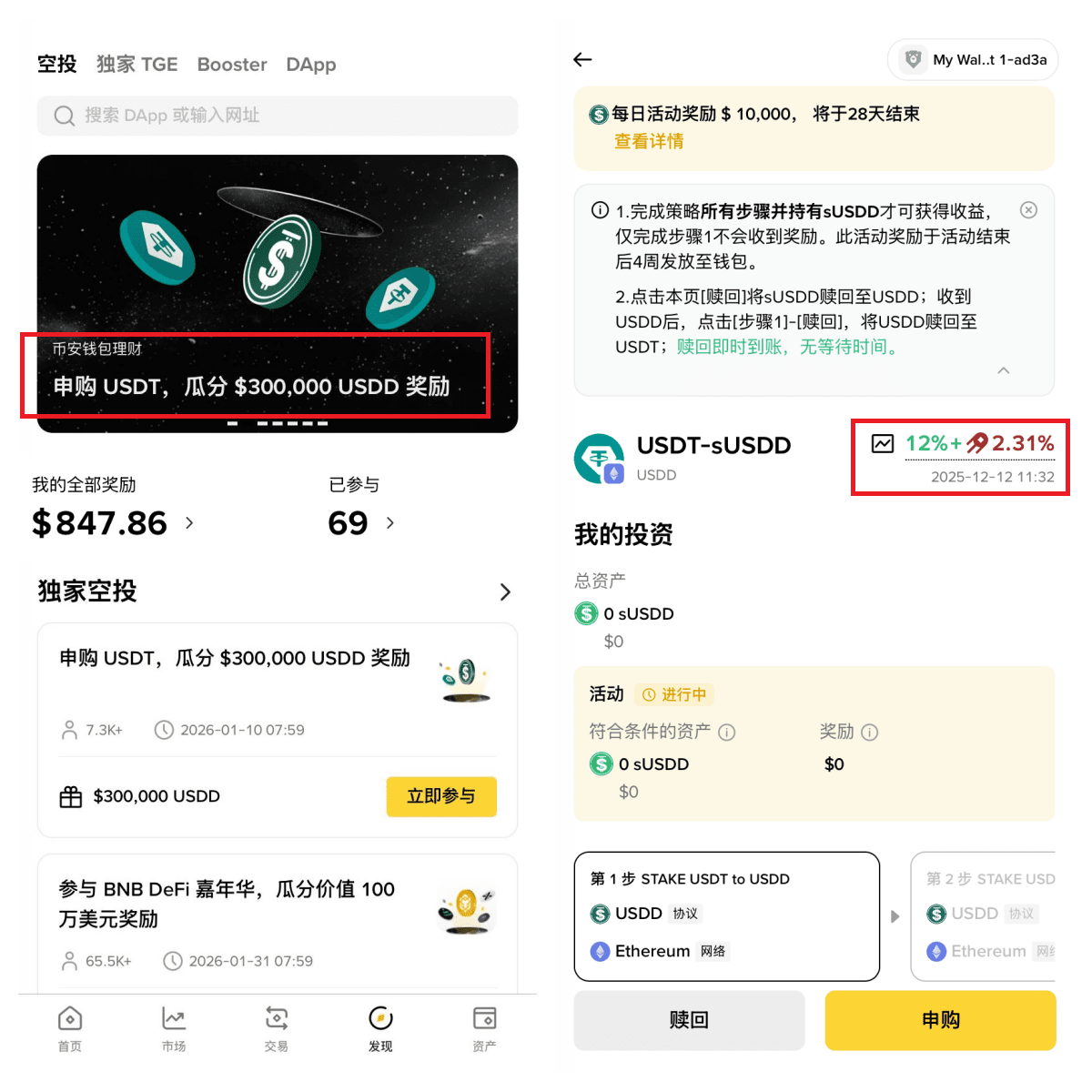 Yesterday, Binance Wallet launched a pig trotter rice event: pledge USDD to receive an annualized return of 14.3%.
