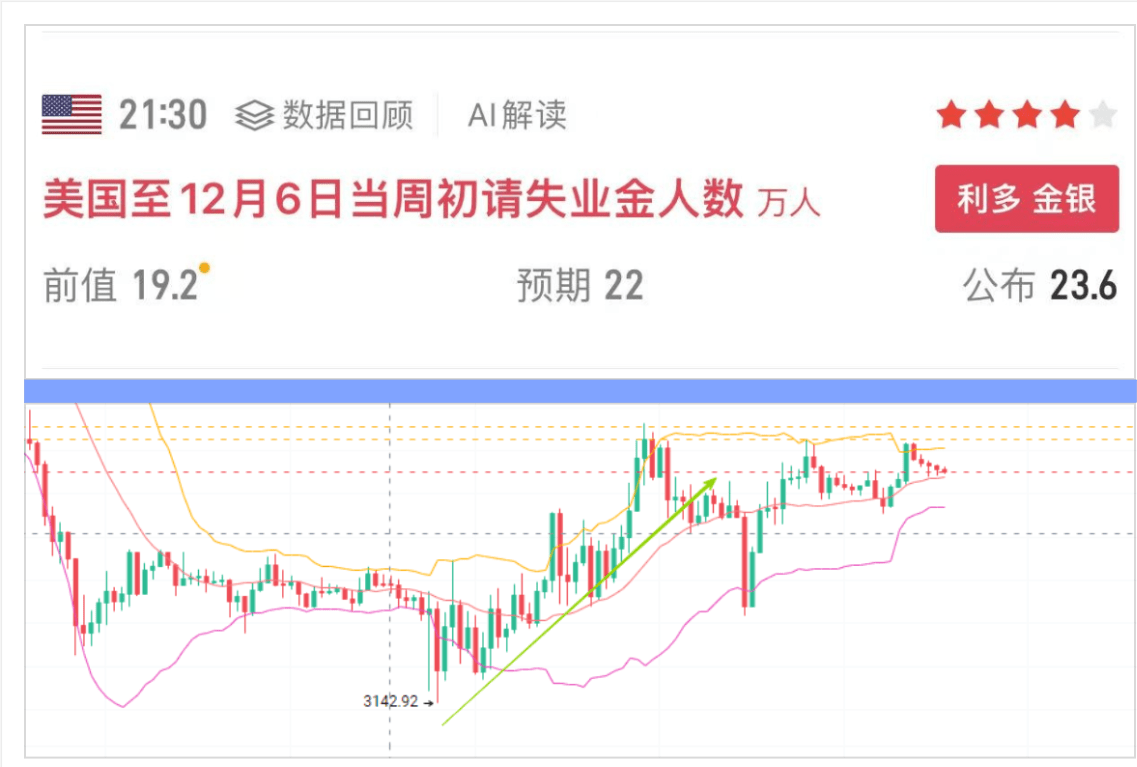 没错,亚盘时间资金或许沉睡,但当美盘醒来,全球最聪明的钱眼里,每一个超预期的经济数据都是调整航向的罗盘。昨夜23.6万的初请人数,犹如一记惊雷。我不敢断言这波上涨全是数据的功劳,但它无疑给弥漫疑虑的市场,注入了一剂关键的看涨情绪强心针。这恰恰证明了老陈一直强调的:在消息真空期,数据就是王道。