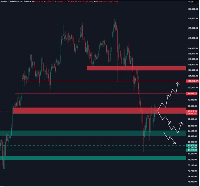 Bitcoin has returned to the resistance range of $92,000-$94,000! Now it's up to the bulls to show their strength: if they can break through this range, the next target is directly aiming for $100,000; if they can't break it, it’s very likely to fall back below $90,000, the back-and-forth is too exhausting~