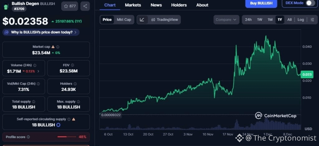 Price movements reflect the energy and participation of its holders, rather than conventional market fundamentals. $BULLISH represents a high-risk, narrative-driven approach to crypto, attracting those who thrive on culture and momentum rather than stability.