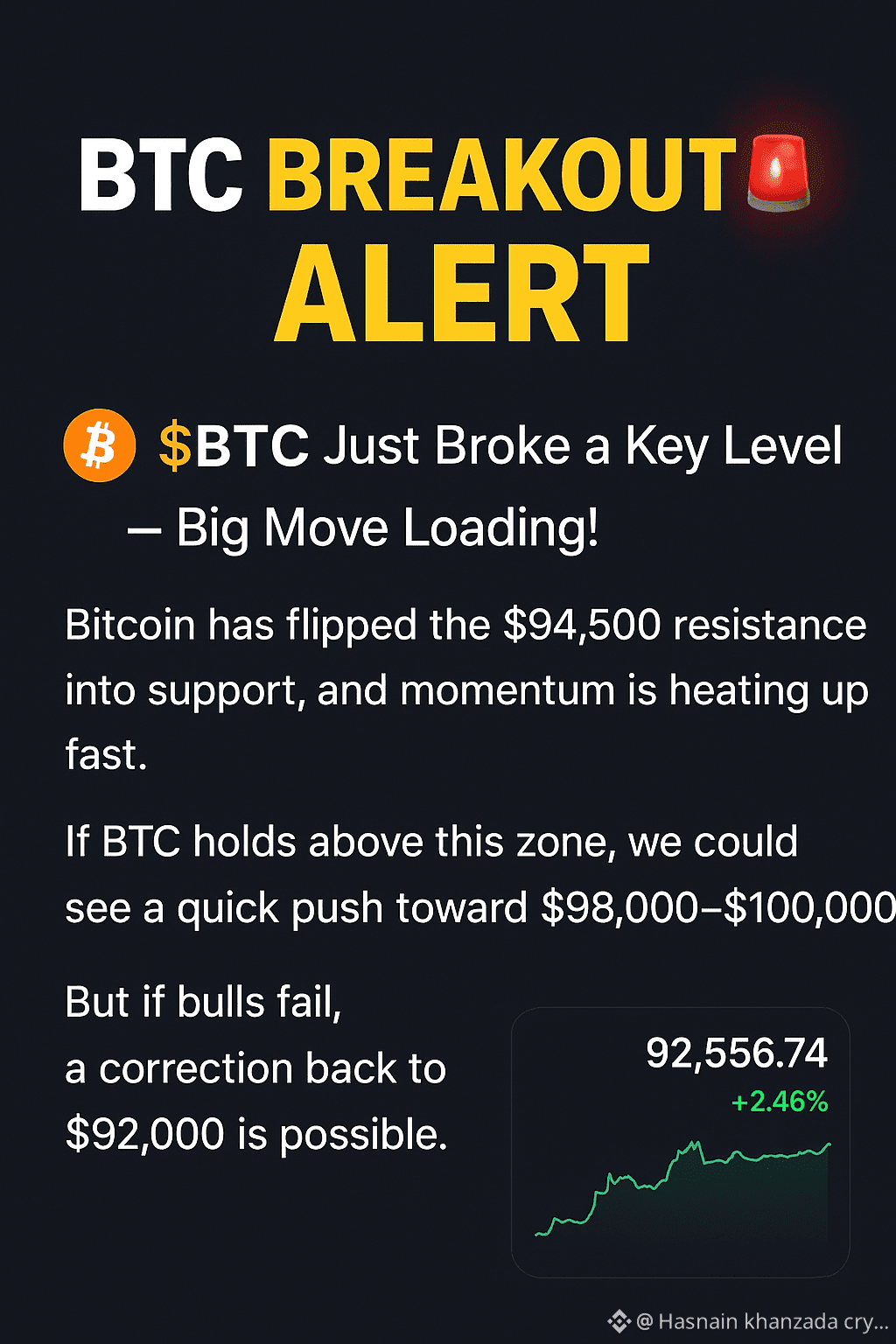 Bitcoin has flipped the $94,500 resistance into support, and momentum is heating up fast.