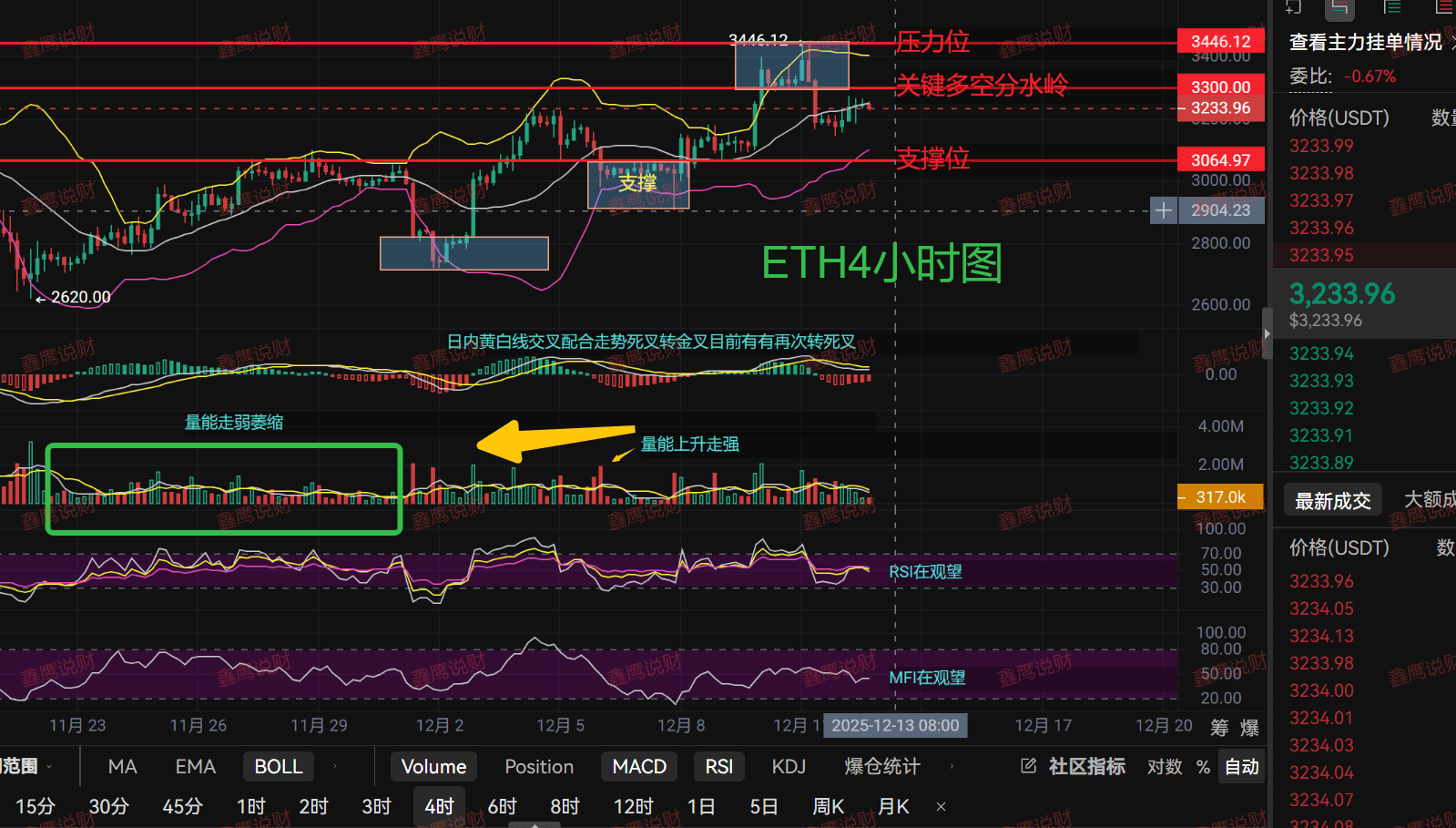 Key position: Current price 3238.68, precisely at the inflection point between long and short at 3300 and strong support at 3064. Above, 3400 and 3446 pressure is like a mountain, below, 3000 is the psychological defense line.