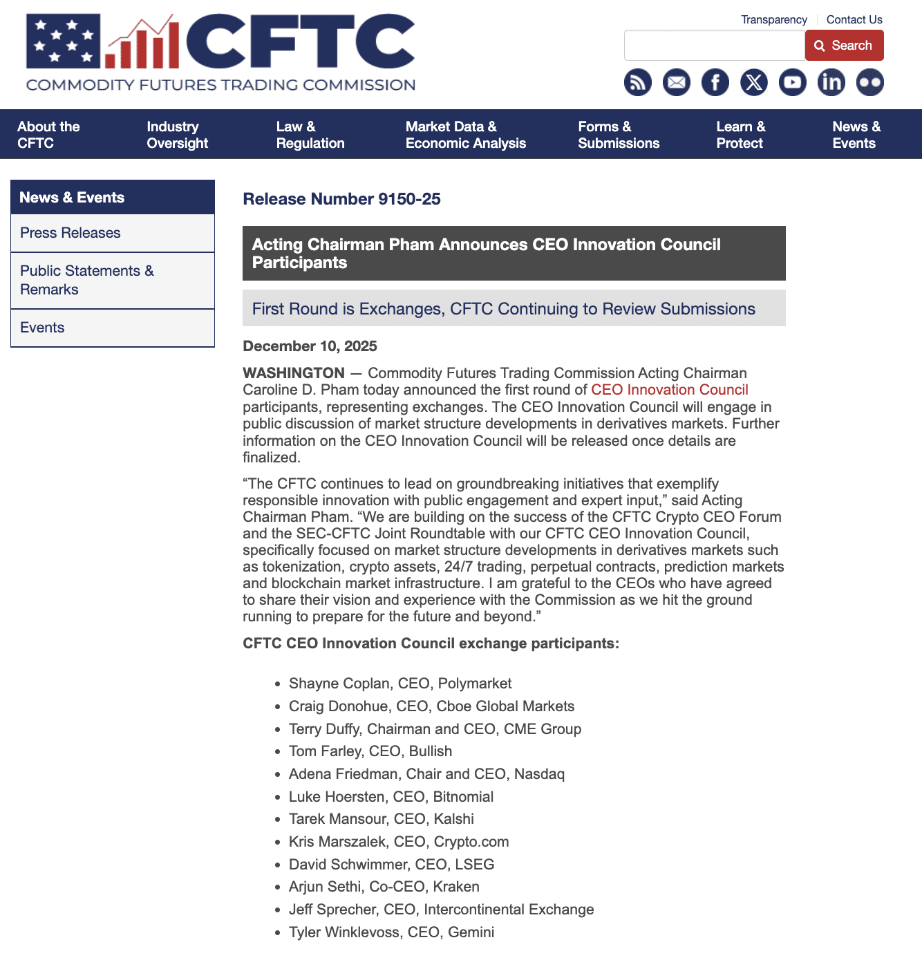 #CFTC formed a council of key leaders from the largest crypto and financial companies. The list includes not only industry representatives but also top managers from the old exchange infrastructure: