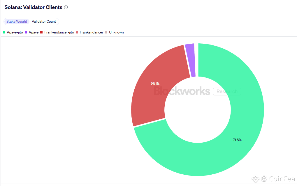Firedancer has established itself as the most powerful alternative client on Solana. Although the current Agave client is still used on most nodes, most have now switched to the full Firedancer client instead of Frankendancer. Solana has 841 validators at present, compared to a high of over 1,300 (including small-scale operators and large platforms such as Jito).