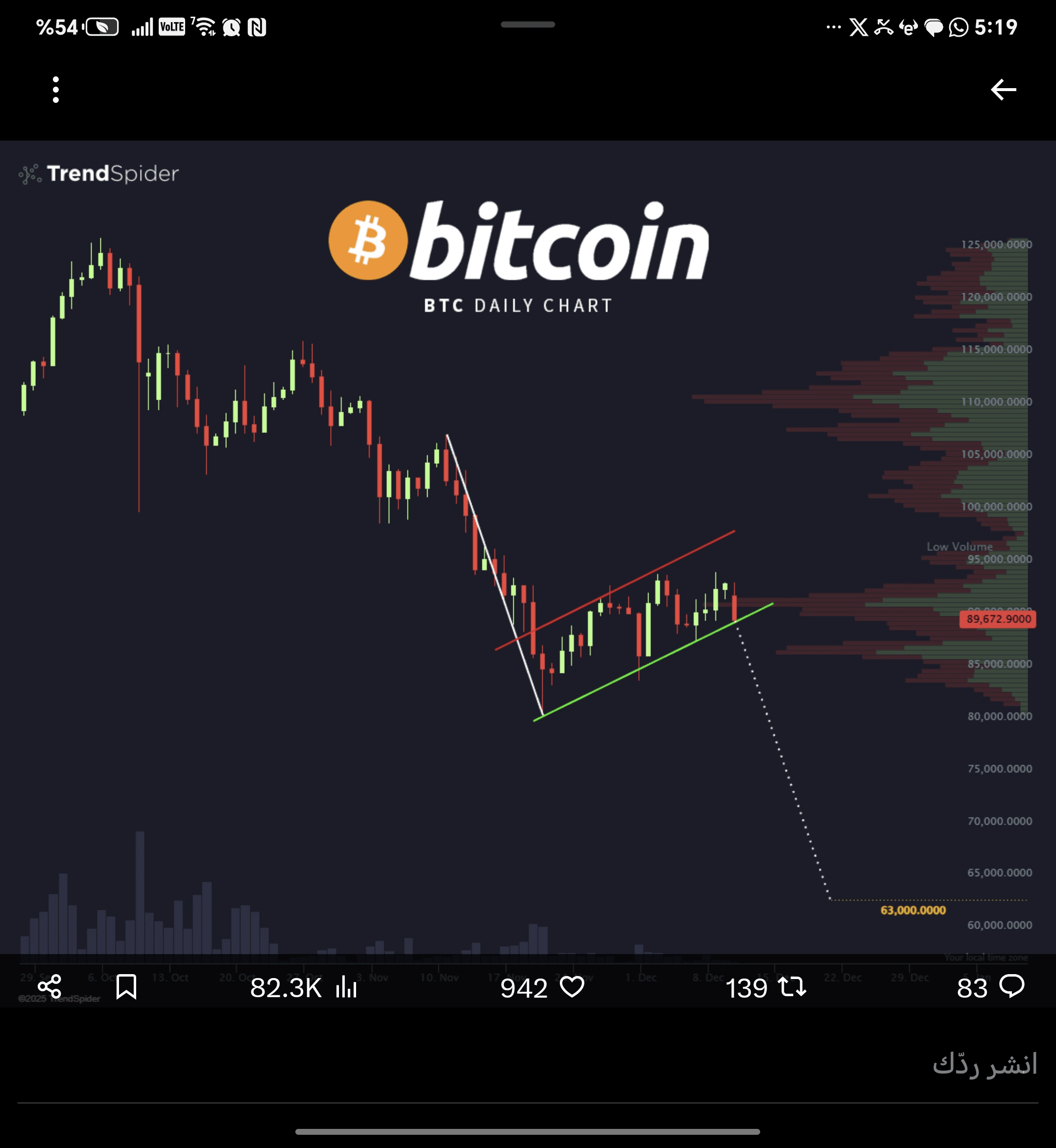 > Bitcoin is currently moving within a Bear Flag continuation pattern after a strong impulsive drop.
