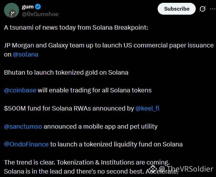 Several initiatives illustrate this shift. Bhutan has introduced tokenized gold products, while institutional allocator Keel has announced a fund valued at approximately $500 million. Ondo Finance is also preparing to deploy a tokenized liquidity fund on Solana. These projects rely on Solana’s ability to process transactions quickly and operate at scale, reinforcing its appeal for on-chain financial infrastructure.