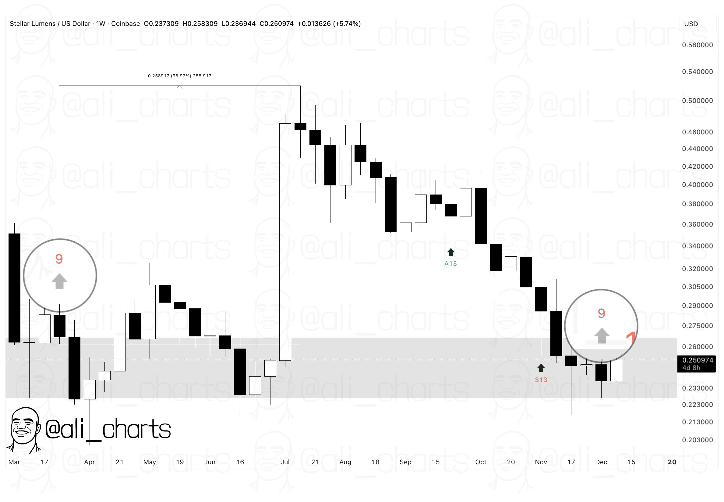 We're not here for guessing games; this is pure Technical Analysis (TA). The expert Ali Martinez, a rockstar that many of us follow, dropped the info: XLM has a TD Sequential buy signal activated on its weekly chart!