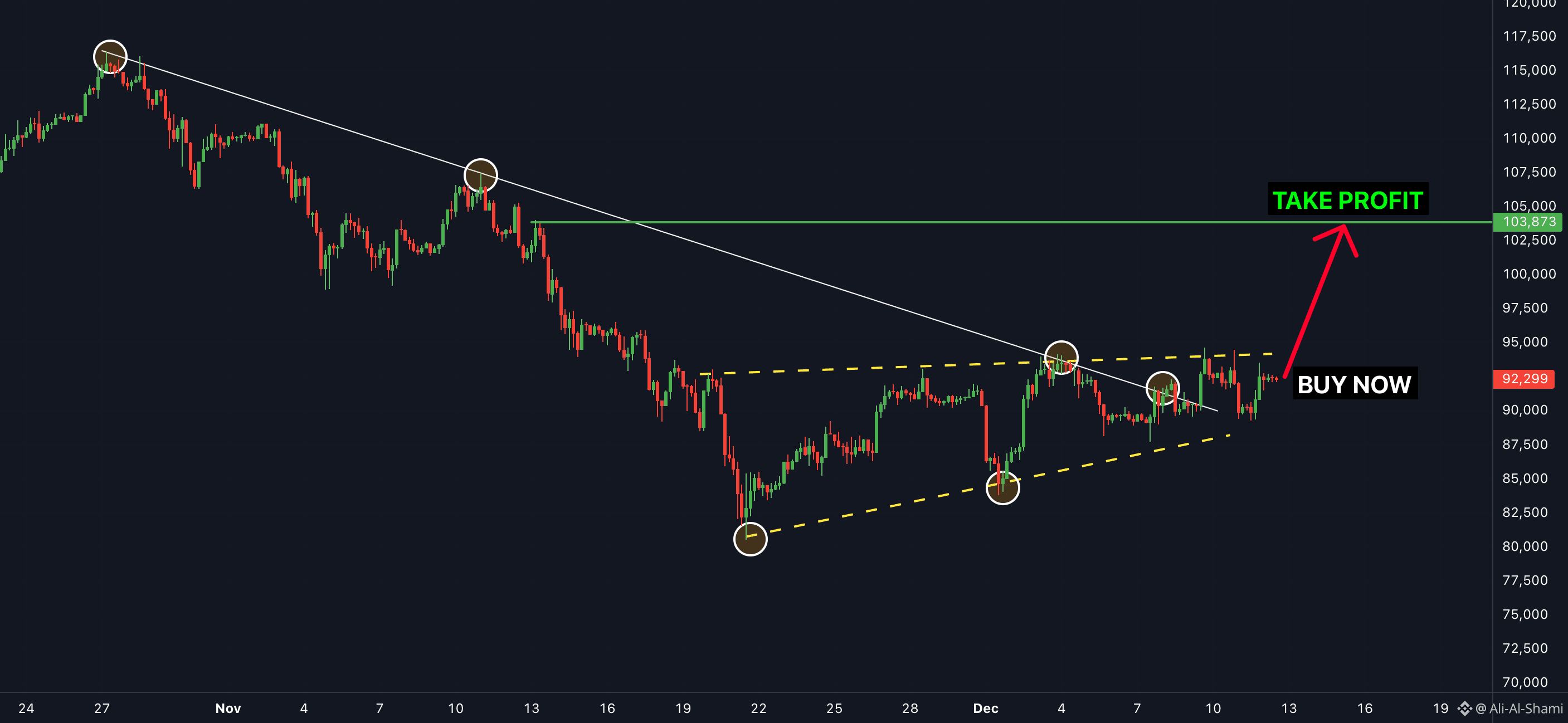 كان BITCOIN (BTC/USD) عالقًا مؤخرًا داخل نمط قناة مثلثية وعانى من صعوبة في الاختراق لعدة أسابيع. ومع ذلك، فقد اخترق السعر مؤخرًا مستوى مقاومة قوي (خط الاتجاه الأبيض الموضح في المخطط) - السعر حاليًا فوق خط الاتجاه الذي عمل كمستوى مقاومة قوي والآن من المحتمل جدًا أن يصل إلى منطقة المقاومة التالية التي تم وضع علامة عليها كمستوى لتحقيق الربح. اشترِ BTCUSD الآن!