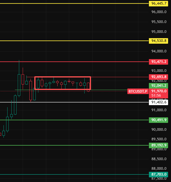 For Bitcoin, pay attention to the consolidation zone top of 927 at night. Only if it stabilizes above this position will the market continue to rise. Pay attention to resistance levels at 93470-94530-96450 nearby!