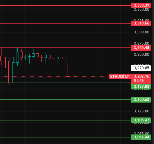 For Ethereum, pay attention to the consolidation zone top of 3265 at night. Only if it stabilizes above this position will the market continue to rise. Pay attention to resistance levels at 3320-3360-3397 nearby!