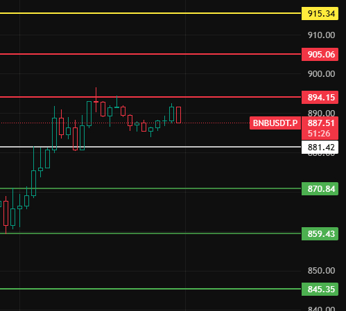 For BNB, pay attention to the consolidation zone top of 894 at night. Only if it stabilizes above this position will the market continue to rise. Pay attention to resistance levels at 905-915-928 nearby!
