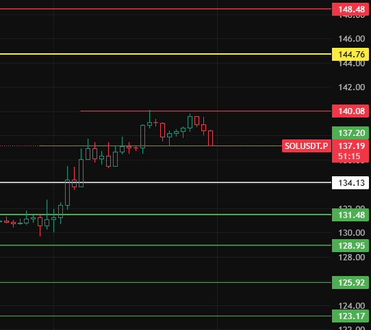 For SOL, pay attention to the consolidation zone top of 140 at night. Only if it stabilizes above this position will the market continue to rise. Pay attention to resistance levels at 144-148-152 nearby!