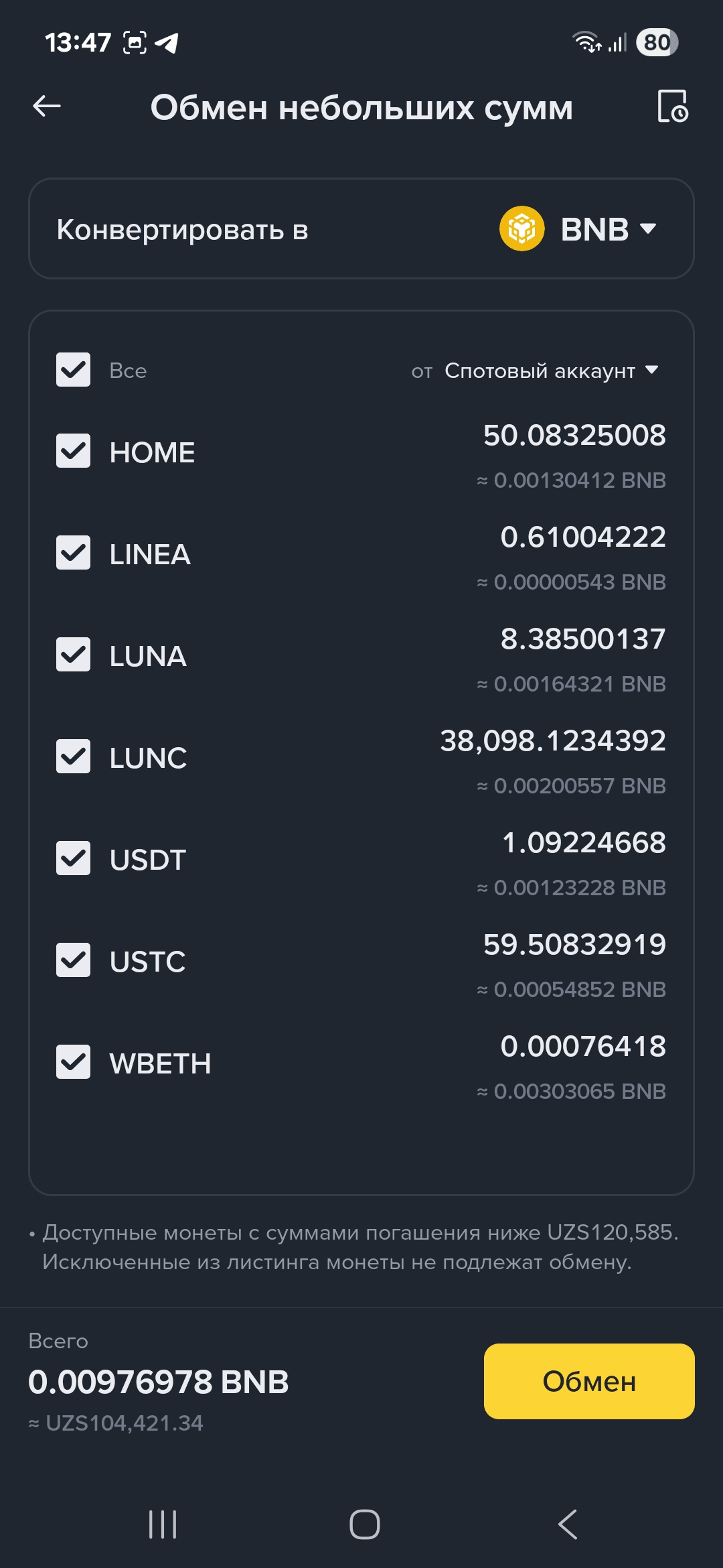 What I exchanged: LUNA, LUNC, HOME, WBETH, USDT, USTC, LINEA, and MAGIC.