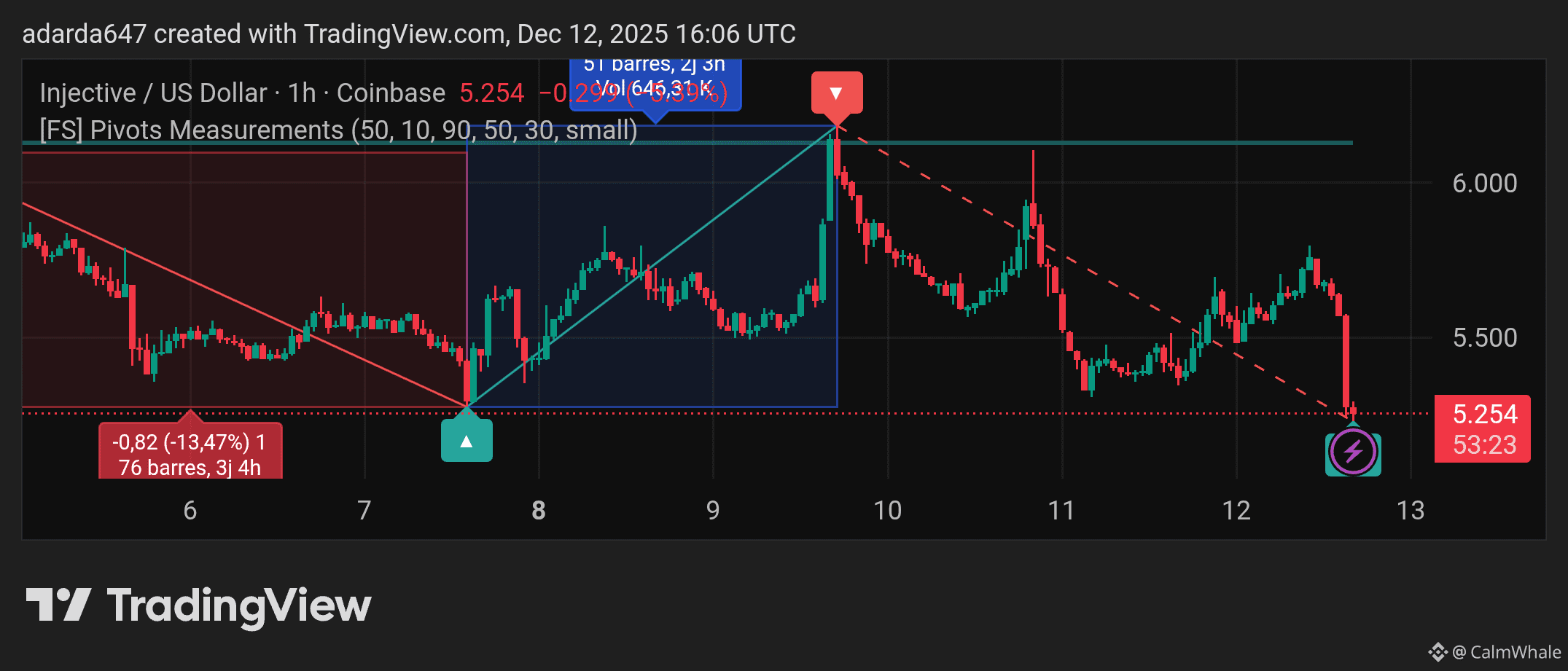 Recent price action shows INJ testing key support levels with modest upside pressure, signaling possible stabilization after choppy movement — a positive sign for sentiment and accumulation behavior.