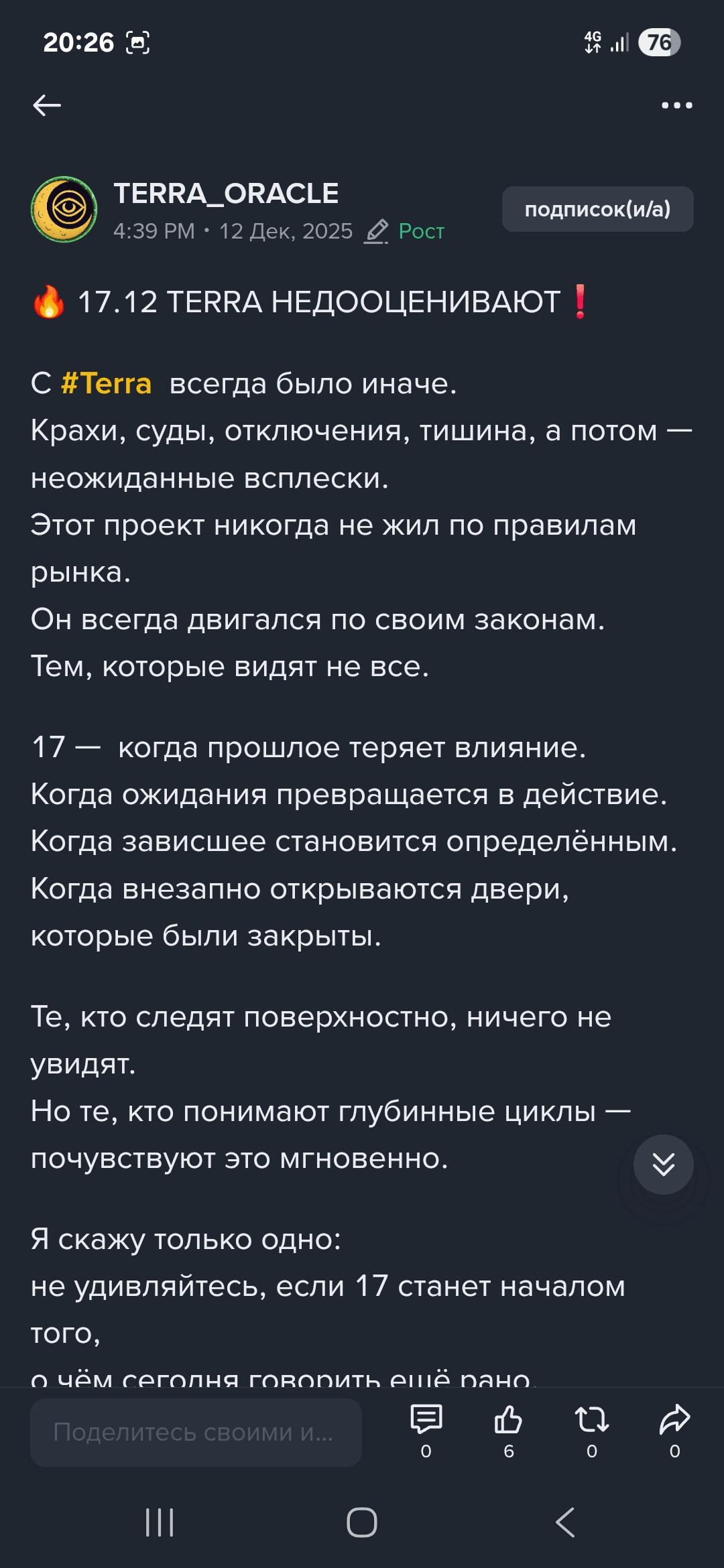 The post about the technical update @Smart_Snail looks neutral, but it is picked up by emotional 'gurus' @TERRA_ORACLE , who talk about 'deep cycles' and set a date (December 17-18).