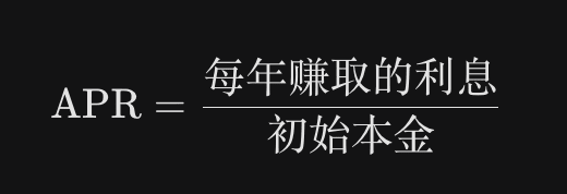 APR is the total interest you earn from the initial principal over a year, expressed as a percentage.
