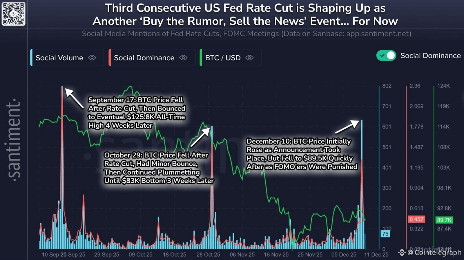 Historic sentiment and price patterns follow Fed rate cuts. Source: Santiment