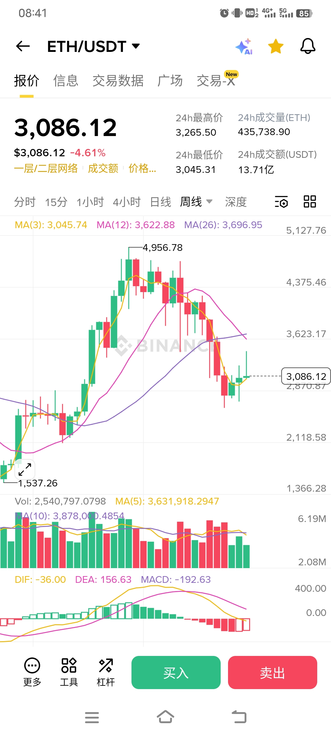 Weekly chart: MACD histogram -194! This is a terrifying figure from the 2022 bear market! RSI has dropped to 33, and the downward momentum is fiercer than Maotai's stock split.