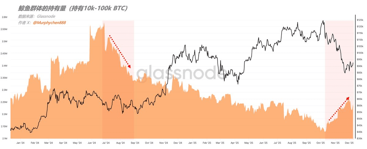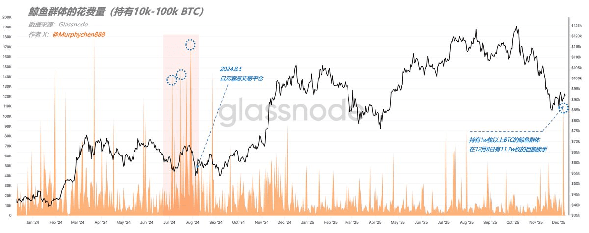 On December 8, the whale group holding over 10,000 BTC — also one of the main groups of BTC in this cycle — suddenly had a massive turnover of 117,000 BTC. I checked the BTC balance on exchanges during the same period, and there was no significant increase, indicating that this transaction was completed only on-chain.