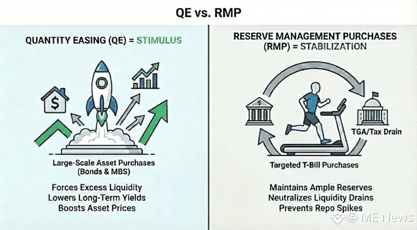 以下是美联储的储备管理购买计划(Reserve Management Purchases,RMP)在结构上与量化宽松(QE)的区别,以及其潜在影响的分析。