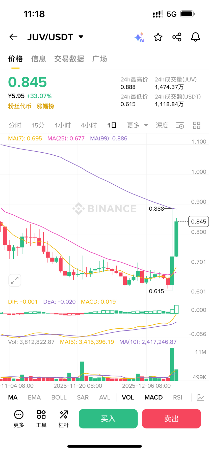 Take the recent Juventus fan token (JUV) as an example; a rumor of acquisition directly caused it to soar over 30% in one day, with the price skyrocketing from around $0.6 to nearly $0.9. The reason is that it's rumored that stablecoin giant Tether intends to spend 1 billion euros to acquire Juventus Football Club, with an additional investment of 1 billion euros. This kind of 'sky-high acquisition' story acts like a bomb in a dull market, quickly attracting a lot of attention and funds, with 24-hour trading volume skyrocketing to tens of millions of dollars.