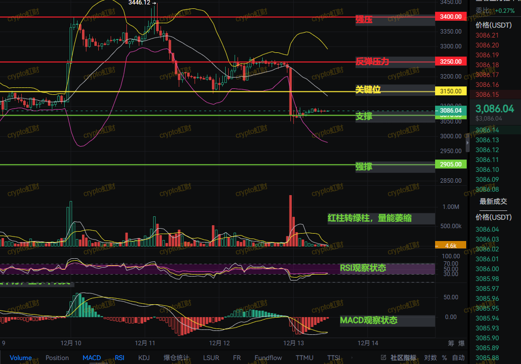 If 3070 does not break, it can still oscillate and grind at the bottom in the short term; once it breaks down with volume, it is likely to test the psychological level of 3000. It must stabilize above 3150 to open up rebound space.